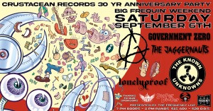 Wednesday, July 30th, 2025We will be celebrating 30 years of Crustacean Records with a pair of parties this September. On this weekend, The Jaggernauts will be unleashing upon the world the 101st release on the label. It’s been quite a ride. Thank you for your support over all of these years and I hope to see you there – Crusty.